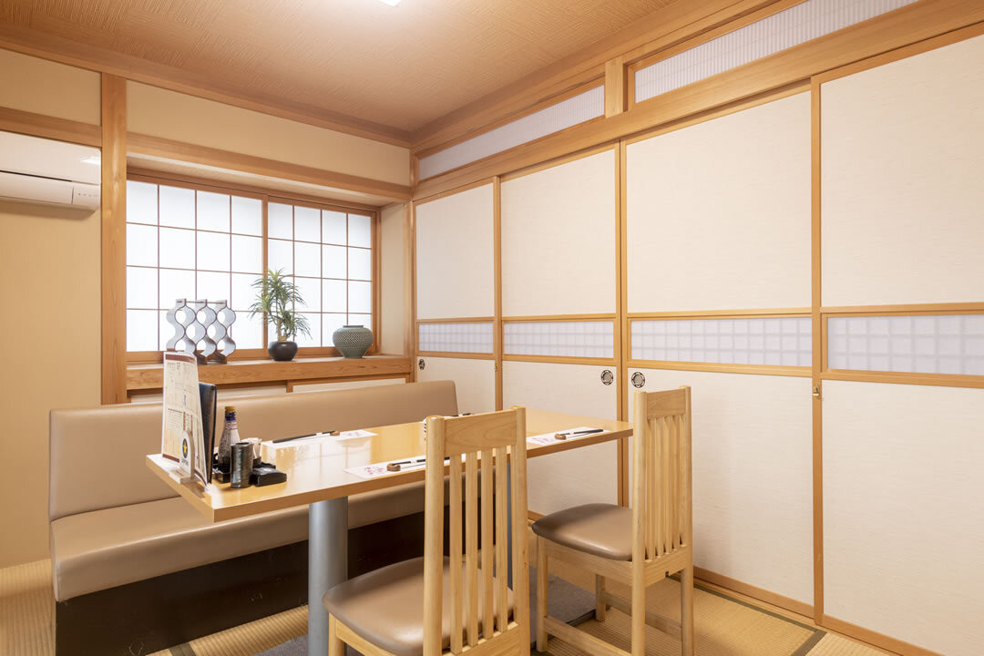 店内には掘りごたつ・お座敷テーブル席の個室6室完備