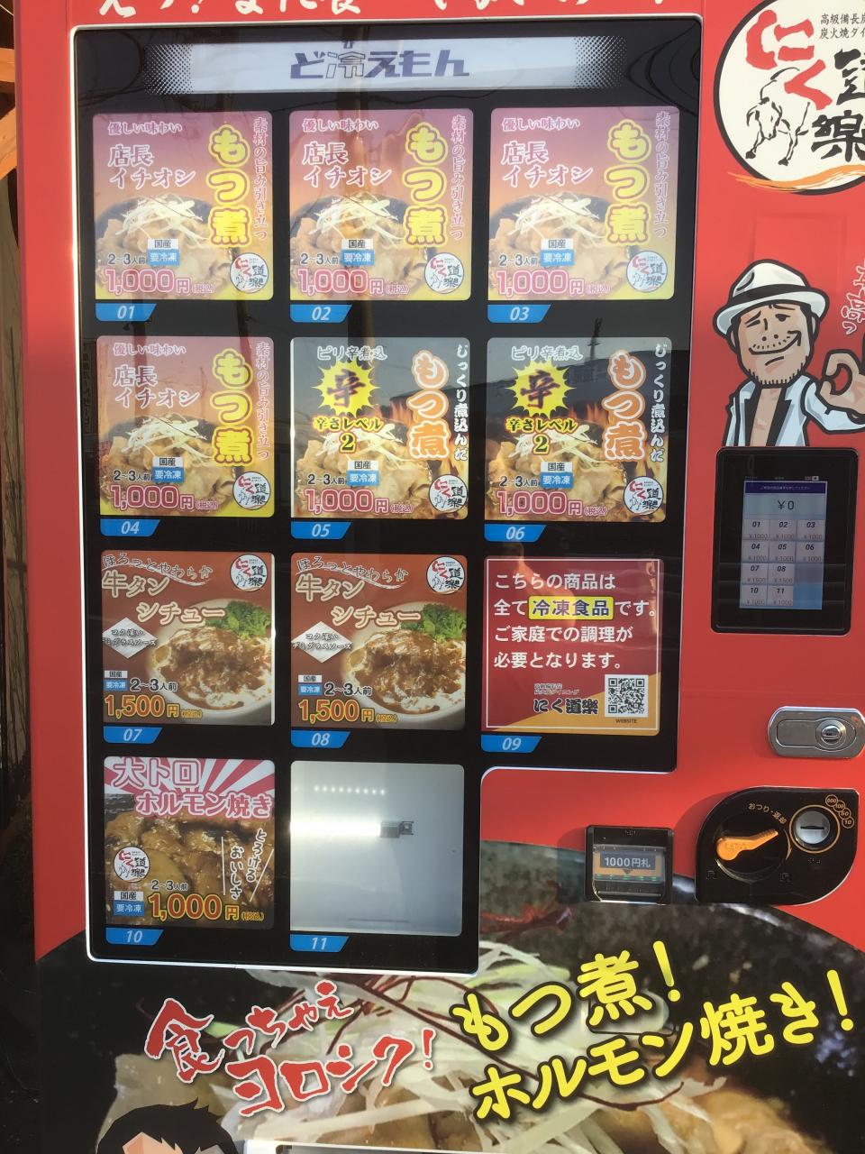 冷凍自動販売機24h 今日から大トロホルモン焼き追加