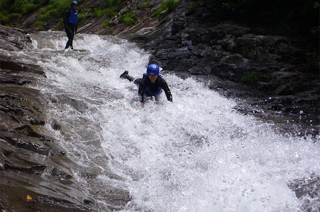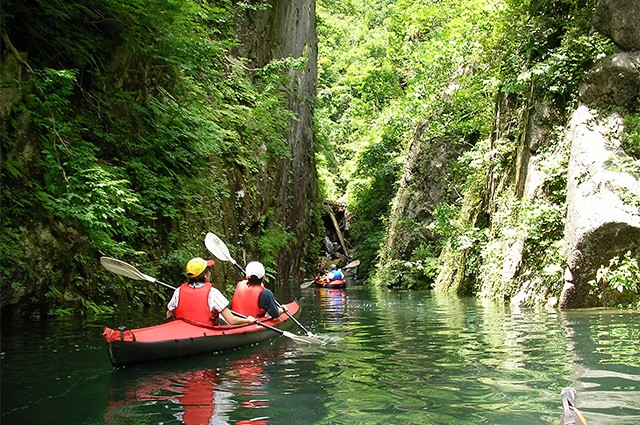 春先には雪解け水で、さらにスリリングな激流下りが体験できる |