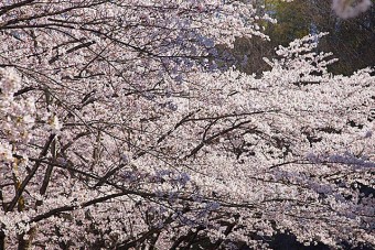 大塩湖は周囲3.2km、湖に沿ってソメイヨシノの桜の木が約1000本ずっと続いている。