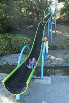 小川の上を滑る! |