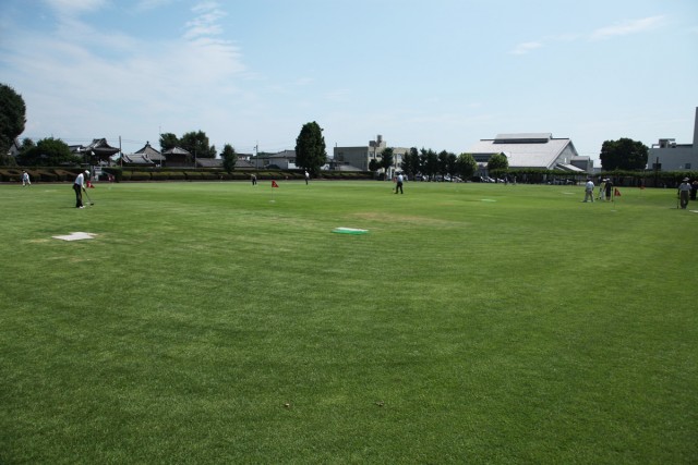 広い芝生のグラウンド昭和52年まで、藤岡第一小学校用地として使用されていた。昭和58年、あかぎ国体のサッカー場として使われたグラウンド。現在は、公園の大部分が、広い芝生の多目的グラウンドになり、午前中にはゲートボールやグランドゴルフに興じるお年寄りの姿も。大きな藤棚や、ケヤキの大木が、やさしい日陰を作り、憩いの場となっている。また、公園内には藤岡中央児童館がある。 |