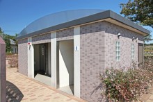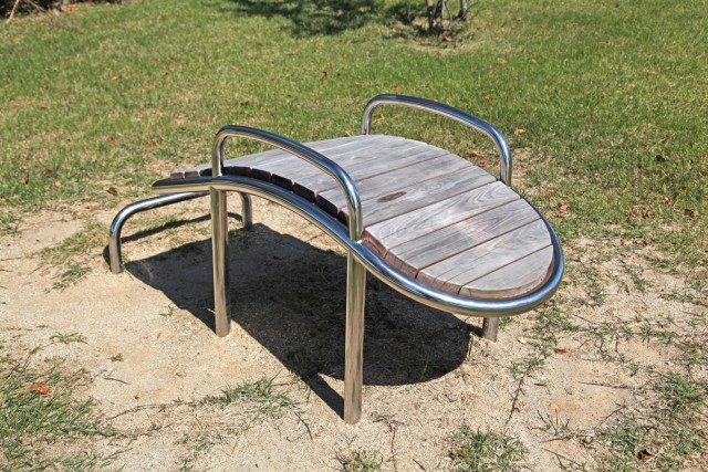 堤防の向こう側が波志江下沼。スロープを使って、車イスやベビーカーで堤防上の歩道に行くことが可能。