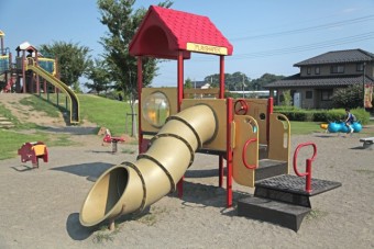 冒険とりでのような大型遊具、夏に人気の噴水広場すべり台をはじめネットクライム、ウォールクライムなどのアクティブな遊びを組み合わせた大型遊具が、芝生の小高い丘の上に設置されている。遊具全体が冒険とりでのようになっているので、元気いっぱいに自由に遊ぶことができる。6月中から9月末の期間では、水遊びのできる噴水広場が大人気だ。 |