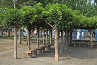 上越新幹線ガード下近く、きれいに整備された公園公園のすぐ西側頭上には、上越新幹線が通る。1.2haと比較的小規模公園ながらも、約15台分の駐車スペースあり。公園内はきれいに清掃され、気持ちがいい。中央の芝生広場を囲むように舗装道があり、ベビーカーでの散歩も可。 |