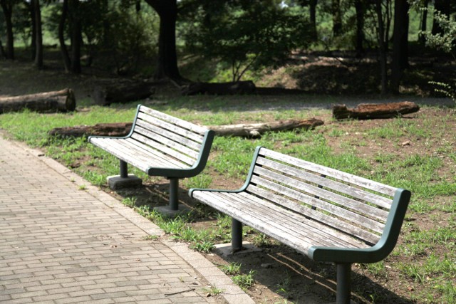公園のほぼ中央にある林。小川が流れ、木漏れ日の中、木の橋を渡って森林浴が楽しめる。