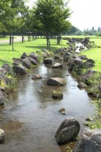 両岸には天然石が置かれ、渓流の流れを模した本格的な川。