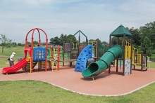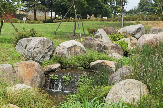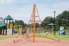 遊具の下はケガ防止の為のクッション材が   池もあるよ   動物スプリング遊具