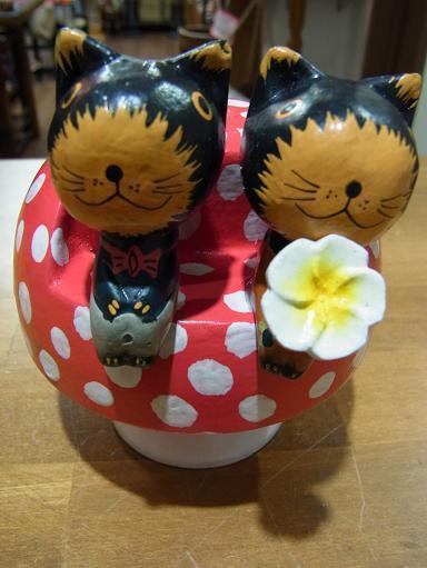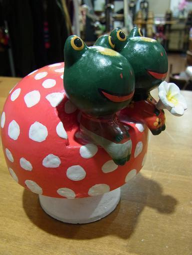 しかもカエル・ネコが座っているのは可愛いキノコチェアー♪
