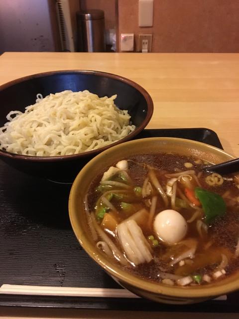 いつも定番の手打ち五目ラーメンを食べます。 この店は手打ち麺でもちもち感が売り。 ま、待てよ。 つけ麺で冷水で締めてあれば更に食感が良い筈。 熊ちゃんは考えました。 この位、会社でも考えれば出世したのに⁈ と云う訳で辛味五目つけ麺をチョイス。 麺の食感は予想通り。 つけ汁は一味入りで、元々は魚系の優しいスープにパンチが加わっています。 旨い! ボリュームもかなり有ります。 オススメ。 ひさびさのおすすめ度 五つ星!