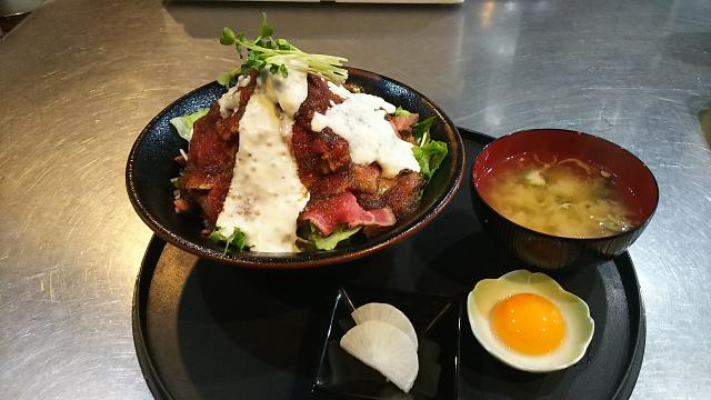 天狗屋 お昼のランチはけっこう混んでる…。 オススメは レアステーキ! ローストビーフ! レアステーキは定食と丼がありお好みで選べ ボリューム満点 !(´゚ω゚`ノ)ノ ローストビーフ丼は お肉の量が多く満足すること 間違いなし(・∀・)イイネ!! うれしい事に 単品注文可能~ スタミナ丼やチキンソースカツ丼 何を食べても大満足 ランチは席予約しておくといいのかも? 注文予約すれば 時間の少ないお昼お休みもスムーズかもネェ~