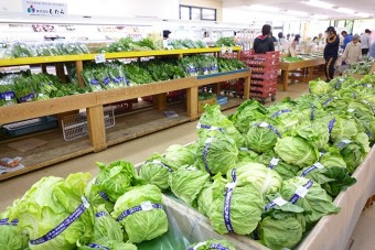 風ラインふじみの店内には毎日たくさんの野菜が並ぶ |