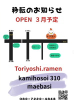 千代田町のトリヨシラーメン閉店させていただきます🙇移転先で新たなトリヨシラーメンをスタートさせて頂きます