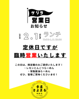 2/1(日)のランチは、臨時『営業』致します!!