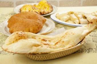 | カリフラワー、ニンジン、じゃがいも、いんげんなど5種類の野菜が入ったナン | カリカリに焼き上げてバターをいっぱい塗ったナン | |||||