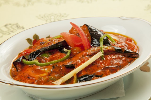 | ナス、じゃがいも、玉ねぎ、トマト、ハーブスパイスが入った野菜のカリー | ||||||