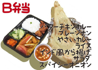 バターチキンカリー、プレーンナン、インド風から揚げ、やさいカリー、ライス、スパイシーオニオン、サラダ ランチ・ディナー共通 972円(税込) |