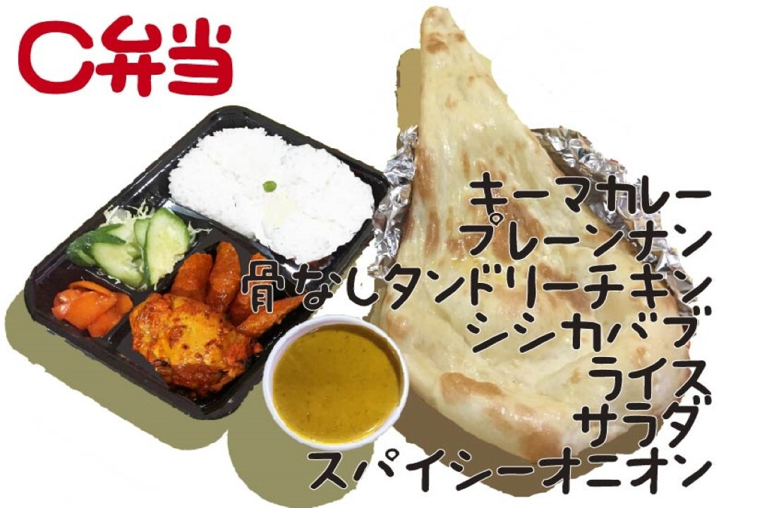 | キーマカリー、プレーンナン、骨なしタンドリーチキン、シシカバブ、ライス、スパイシーオニオン、サラダ ランチ 864円(税込)/ディナー 918円(税込) |