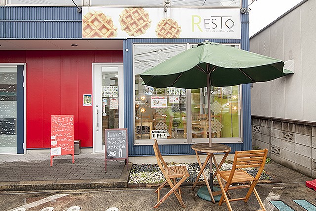 黄緑色の壁と木のテーブルで爽やかな印象の店内 |