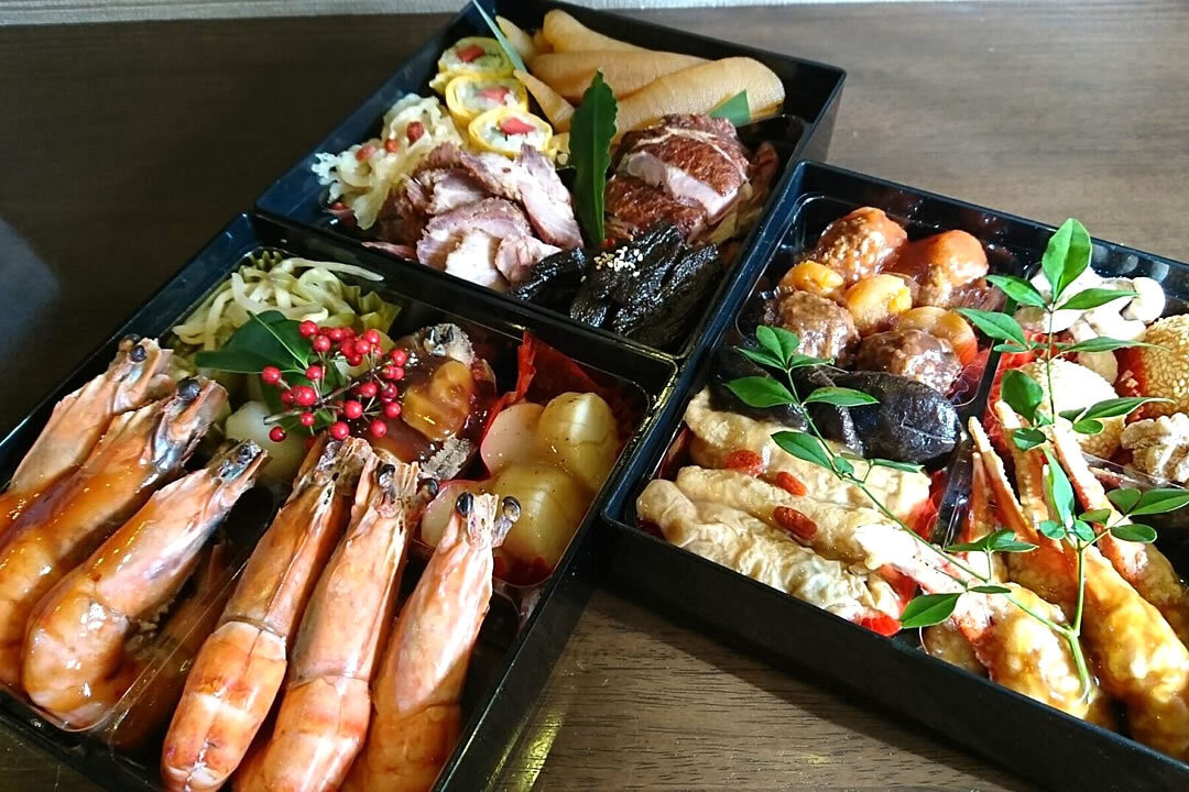 上写真は三段重おせち料理の写真になります