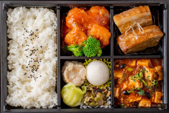天壇で人気の「エビチリ」と「豚の角煮」の2品をメインに、点心も3品ついたお店に行かなくても、中国料理の醍醐味を味わえるお弁当です。