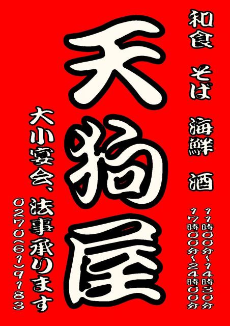 トップ > 群馬のグルメ > 伊勢崎・玉村の居酒屋(和風) > 伊勢崎その他 > 天狗屋