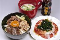 【第1週】●鶏肉とナッツの味噌炒め / さつま芋と昆布の煮物 / モロヘイヤのとろとろスープ【第2週】●ミート丼神戸風 / 白いスープ / トマトサラダ【第3週】 ●鮭の和風ムニエル 人参の甘煮・もやしぞえ / 野菜のふわふわ揚げ / クラフティ