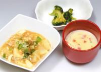●三種の豆のクラムチャウダー/ブロッコリーの香り和え/大根のそぼろあんかけ