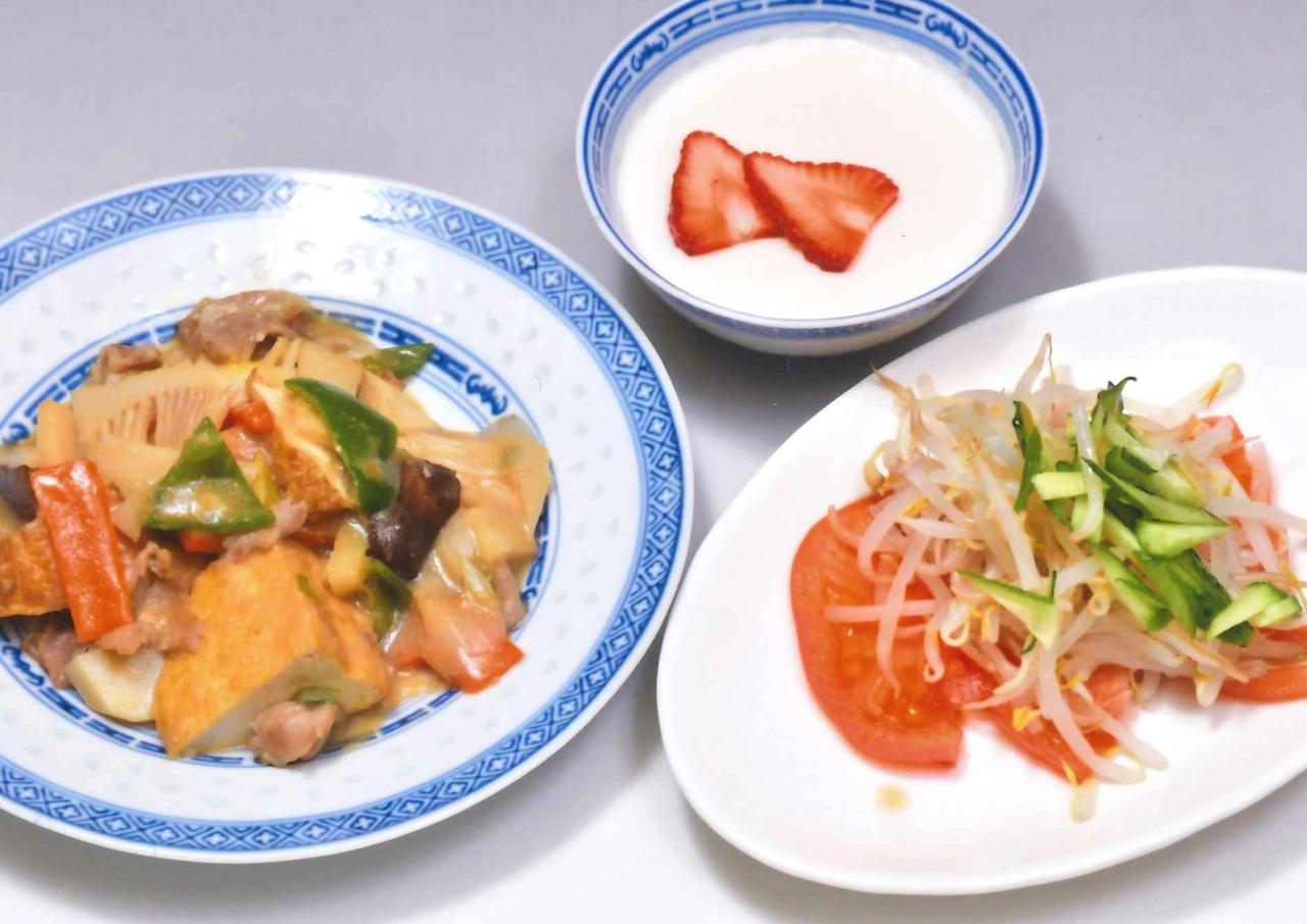 ●家常豆腐/もやしとトマトのサラダ/アーモンドミルクゼリー