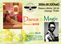 10月22日(土)はベリーダンサーMIWAとマジシャンShuNのコラボレーション。 ご予約はお早めに!