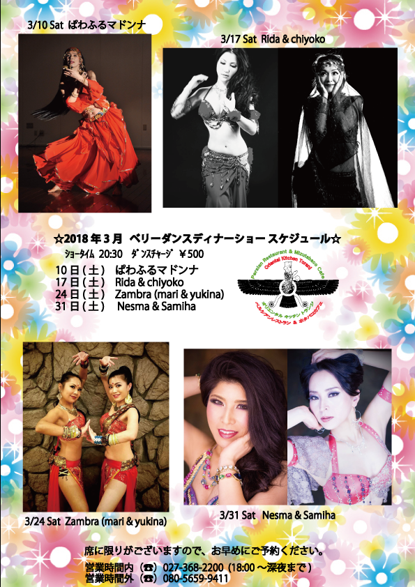 2018年3月 ベリーダンスショースケジュー