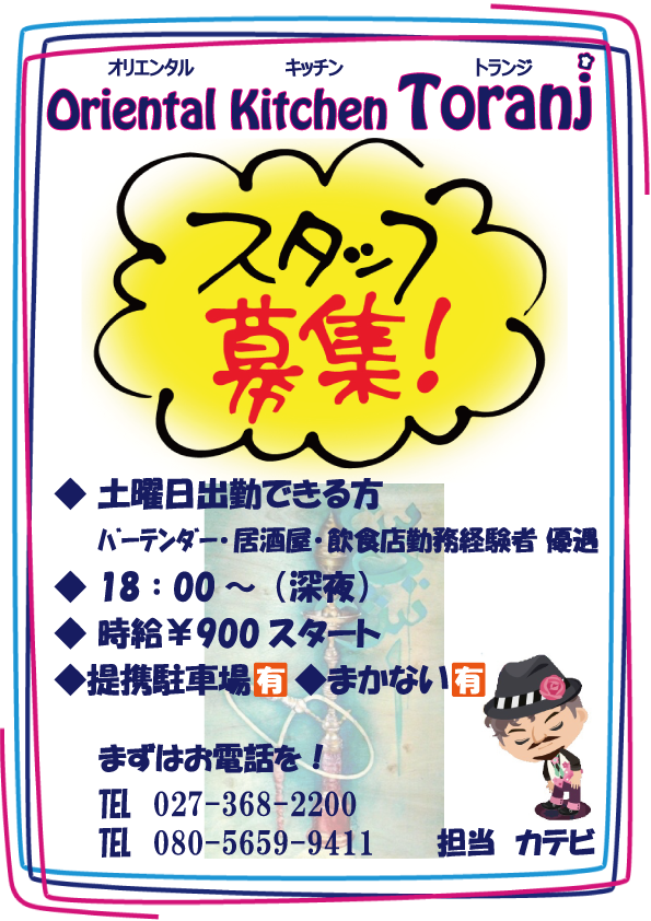 『オリエンタルキッチン トランジ』で一緒に働いてくれる仲間を探しています♪