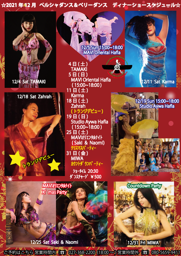 2021年12月 ペルシャダンス & ベリーダンスディナーショースケジュール