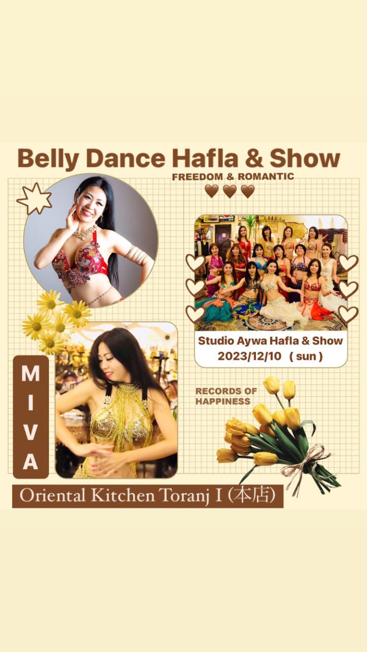 12月10日(日)は Studio AYWA(MIWA)さんのベリーダンスハフラ & ショーです。お食事と水タバコを楽しみながら、ベリーダンスをご覧になってみませんか?完全予約制16:30 Open17:00 Show18:00 Dinnerご予約お待ちしております。