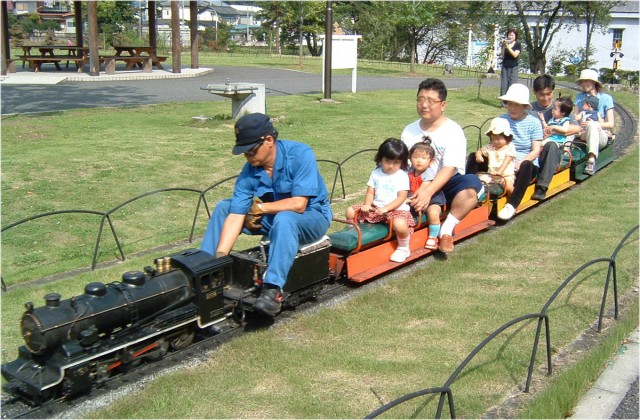 小さいけれど力持ち、子どもにも人気のミニSL。屋外展示スペースを、ぐるりと1周(約300m)走る。有料。 |
