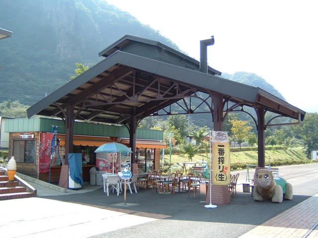 文化むら北側にある遊歩道「アプトの道」を歩いて行くと、旧丸山変電所がある。明治44年に、峠を行き来する列車に電力を供給するために建てられた変電所。レンガ造りの建築物で国の重要文化財として保存されている。変電所前のまるやま駅まで、トロッコ列車もある。 |