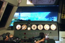 運転台に座り、マスコンハンドルを握れば、気分は機関士! |