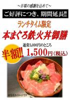 毎度ご来店頂きまして誠にありがとうございます。 ご好評につき、期間延長しました!! ランチ限定で 『本まぐろ鉄火丼御膳』 通常3,000円のところ 半額の 1,5...