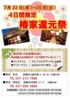 毎度ご来店頂きまして誠にありがとうございます。 椿家本店では7月22日(祝木)~25日(日)の4日間限定で 椿家還元祭を開催致します。 ご来店頂きましたお客様全員にお得なサ...