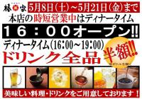 5月9日(日)は時短営業中ですが、もちろん店内でのご飲食も営業しております。