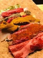 時短営業に伴い弁当にシフトチェンジ‼️、メニューはこんな感じです‼️元々のメニュー・ばらちらし 1800円・極上ばらちらし 2500円・牛レアステーキ弁当 2000円・マグロ蟹イクラ弁...
