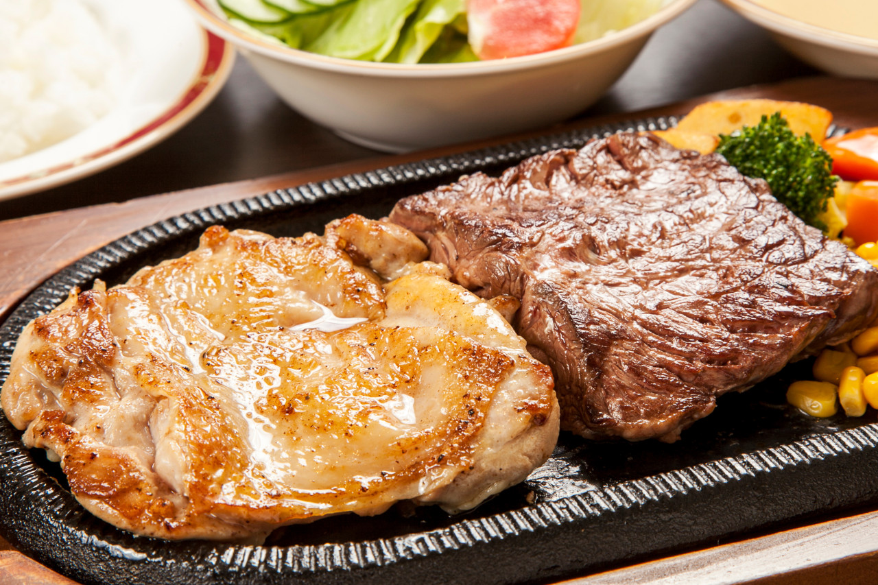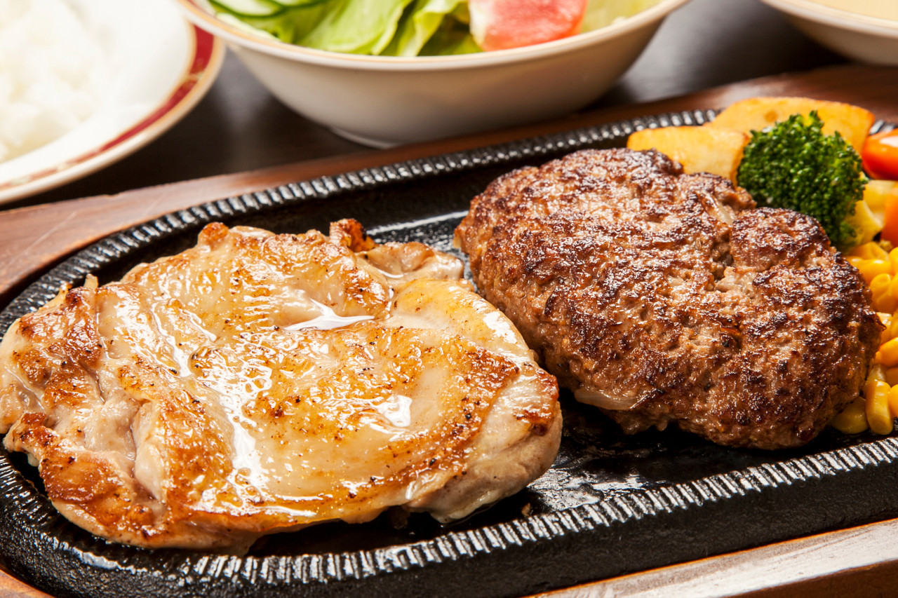 牛ハンバーグ・赤城鶏ステーキ   山ステーキ・赤城鶏ステーキ   山ステーキ・牛ハンバーグ