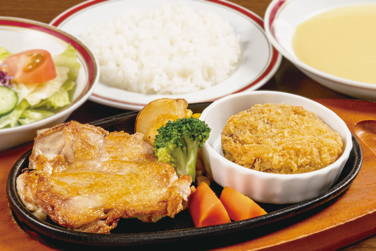 ディナータイムの定食コンビメニュー(ライス・スープつき)