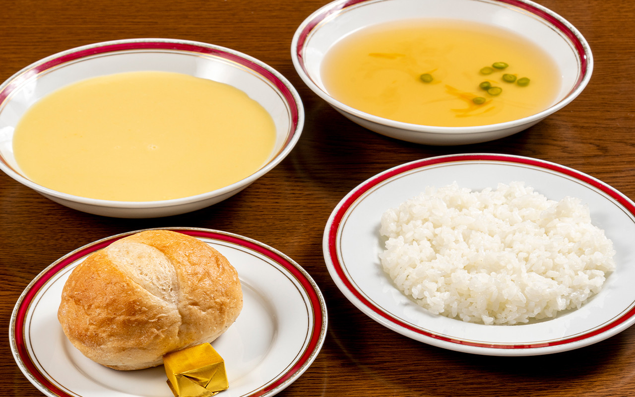 カップスープ、ライス、アイスクリーム付き カップスープ、ライス、アイスクリーム付き