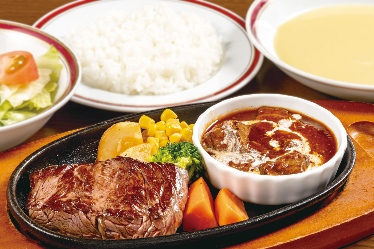 山ステーキ&グラタン   山ステーキ&ポーク煮チーズ焼   山ステーキ&ビーフシチュー